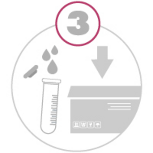 Une fois remplie, vous fermez l’ éprouvette avec l’ autocollant de garantie.